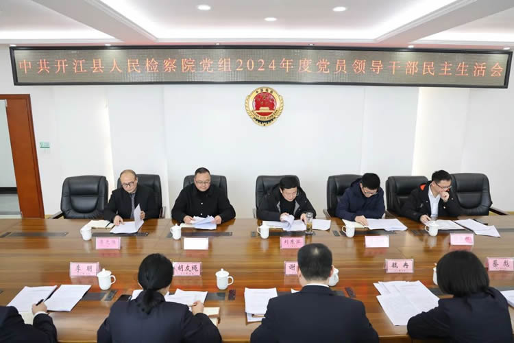 为深入剖析问题、提升领导班子凝聚力与战斗力,更好履行检察职能,中共开江县人民检察院党组于2025年2月27日召开2024年度党员领导干部民主生活会。市检察院三级高级检察官刘东泓、干部处副处长唐栋梁,县委政法委副书记熊伟,县委党建办副主任陈赤虹,县纪委监委派驻县法院纪检组李光胜受邀到位指导。会议由党组书记、检察长谢长江主持。